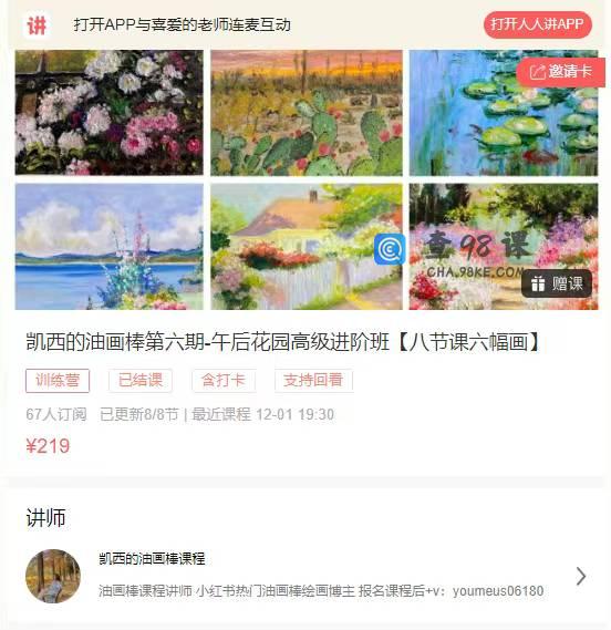 12810 凯西的油画棒第六期-午后花园高级进阶班【八节课六幅画】