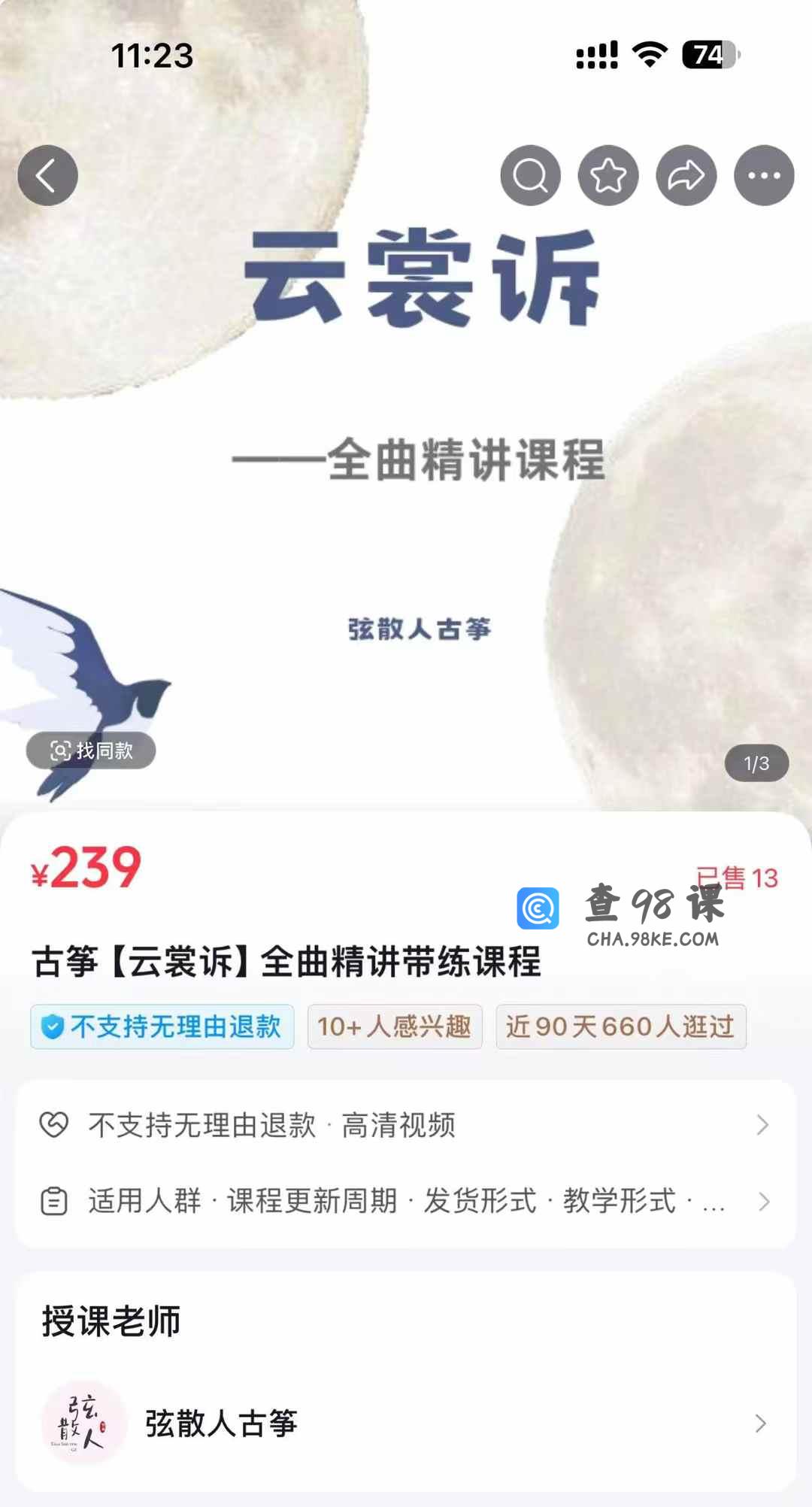 编号20157 古筝【云裳诉】全曲精讲带练课程