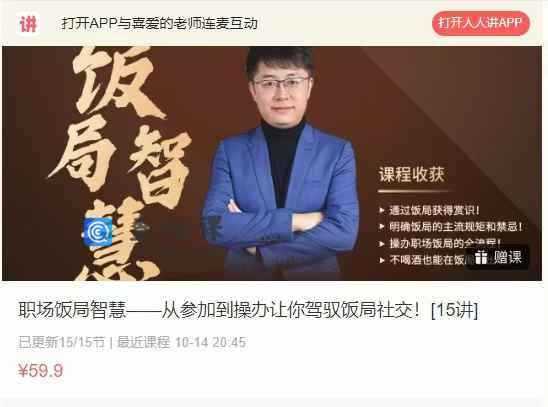 编号24415 职场饭局智慧——从参加到操办让你驾驭饭局社交![15讲]