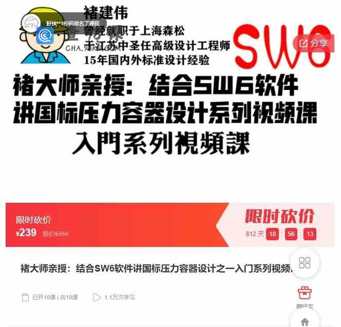 编号26400 千聊 – 褚大师亲授:结合SW6软件讲国标压力容器设计之一入门系列视频课