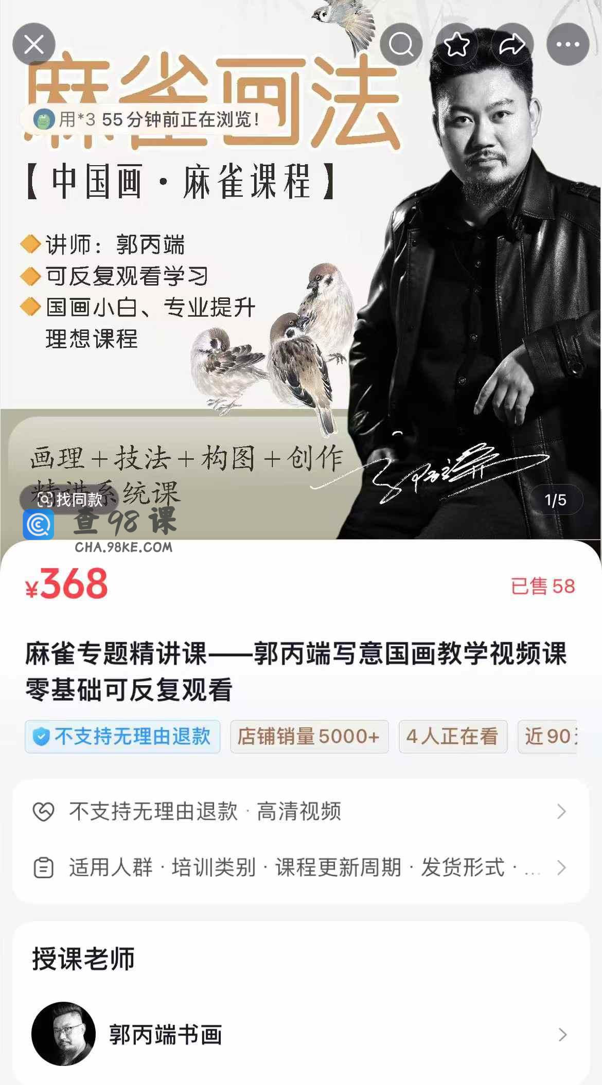 编号28314 麻雀专题精讲课–郭丙端写意国画教学视频课零基础可反复观看