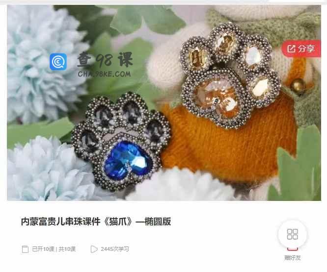 编号31682 千聊 – 内蒙富贵儿串珠课件《猫爪》一椭圆版